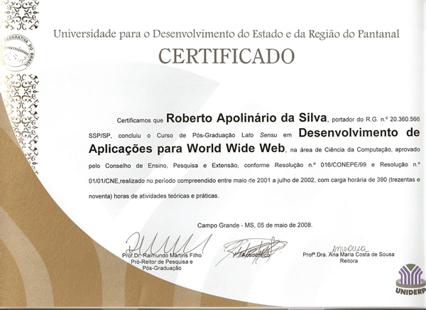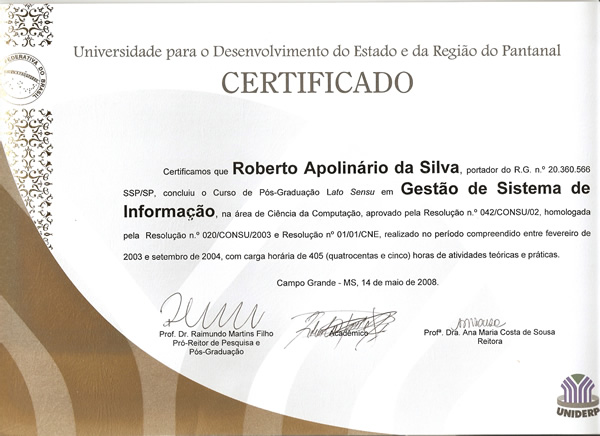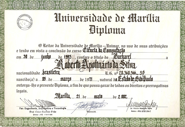 Formado em Ciência da Computação pela Universidade de Marília - UNIMAR, no ano de 1992, Roberto Apolinário da Silva, da RI Sistemas, vem desenvolvendo seus trabalhos e adquirindo cada vez mais a expertíse na criação de sistemas computacionais em diversos segmentos, seja no setor privado ou público (veja na seção Clientes seus principais  serviços).