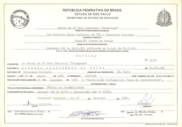 A formação como Técnico em Contabilidade no ano de 1988, auxiliou muito entender o  funcionamento administrativo das empresas em suas diversas áreas: Contas a Pagar, Contas a Receber, Faturamento, Compras, Estoque, Vendas, Produção, Fluxo de Caixa, Contabilidade Gerencial, Escrituração Fiscal, Tributação, Folha de Pagamento, etc.  |